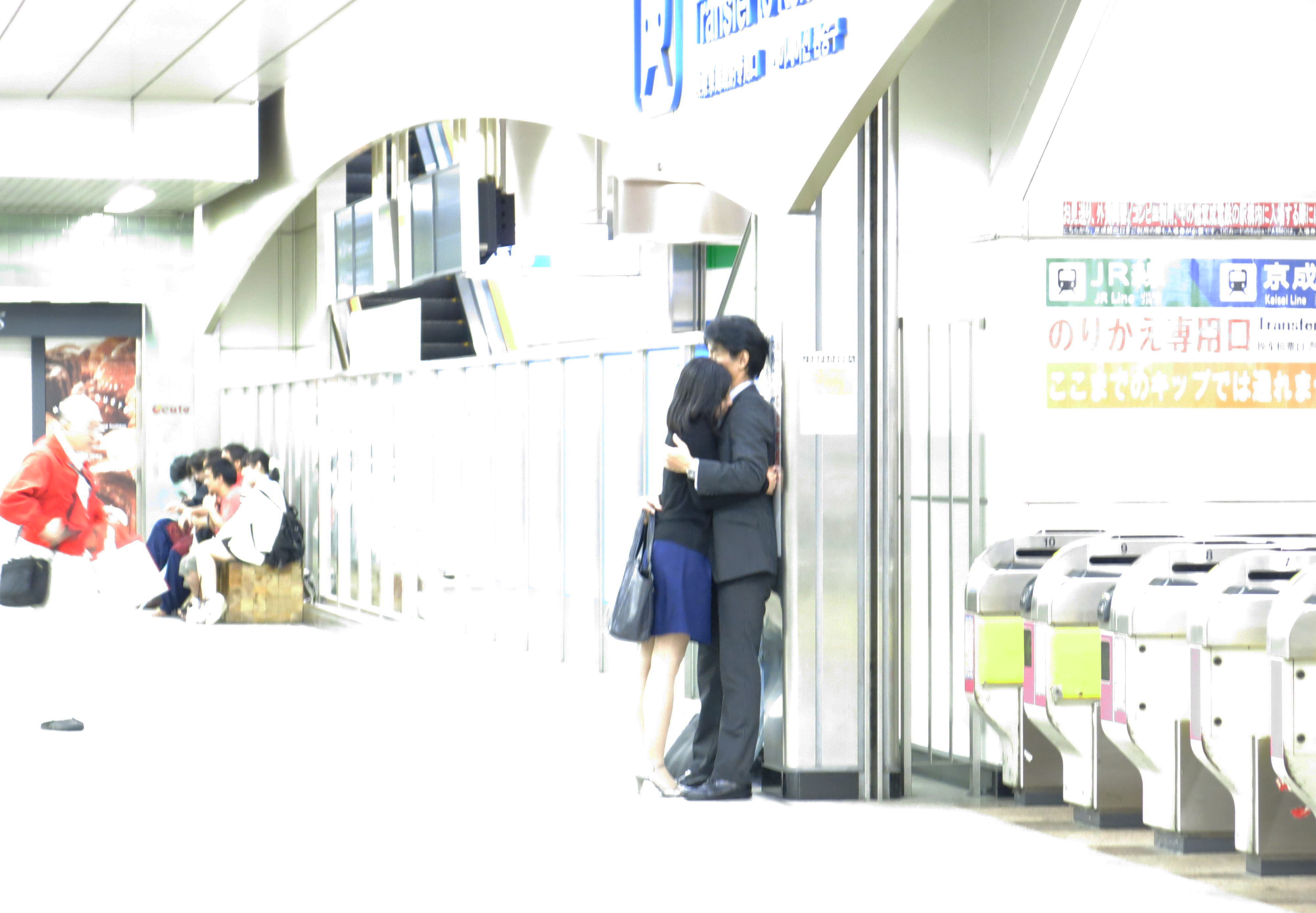 Để chứng minh là người Nhật cũng rất lãng mạn tình cảm nhé (hình ảnh trong một ga tàu điện). Có lẽ máy ảnh cũng phẫn nộ với hành vi “xâm phạm riêng tư” của mình nên tự nhiên hình bị sáng lóa thế này đây