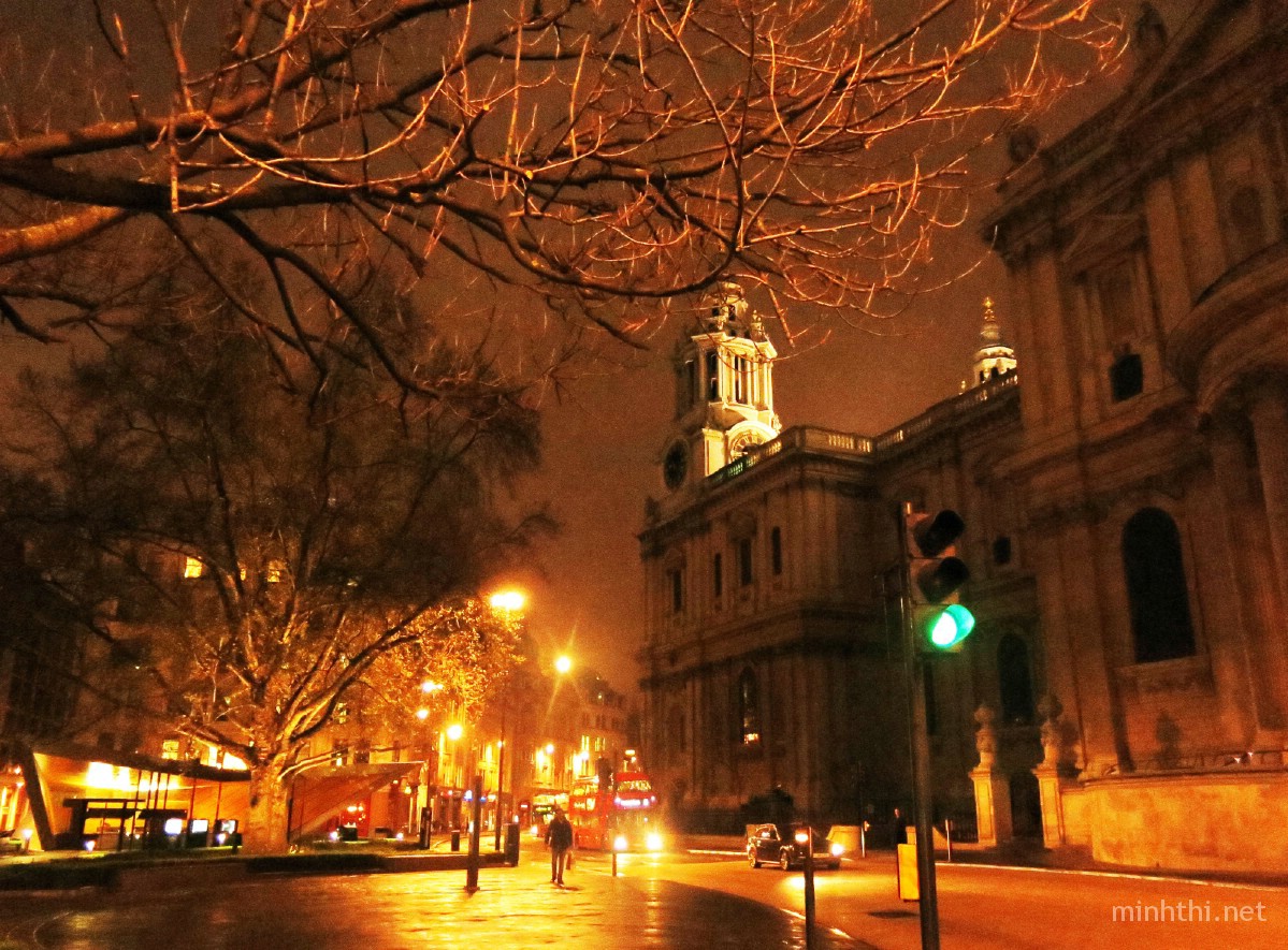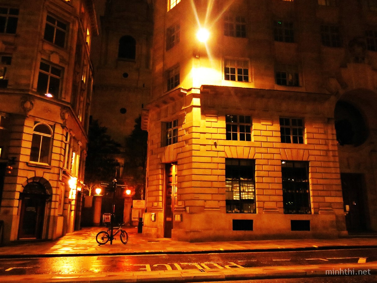 Đi dạo đêm ở London, tôi có cảm giác mình giống như cô bé Alice ở xứ sở thần tiên vậy: vừa háo hức, vừa choáng ngợp, đôi khi còn có phần sợ hãi. Nói sợ hãi là không ngoa, vì mới chín giờ tối thôi mà có lúc, tôi đi bộ giữa đường phố trung tâm chẳng gặp một bóng người, ngoại trừ những chiếc ô tô thi thoảng tạt qua rồi nhanh chóng mất hút.